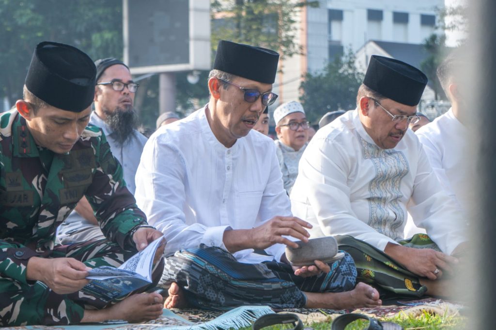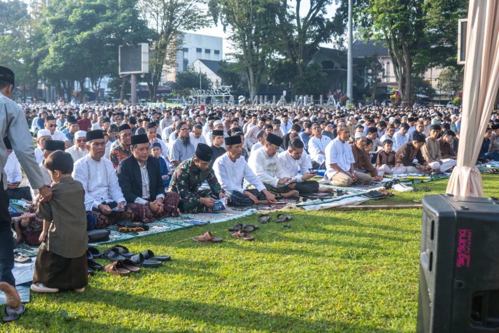 Suasana penuh kebahagiaan semakin terasa saat Wali Kota bersalam-salaman dengan masyarakat yang hadir di Lapangan Pancasila usai Salat Id.
