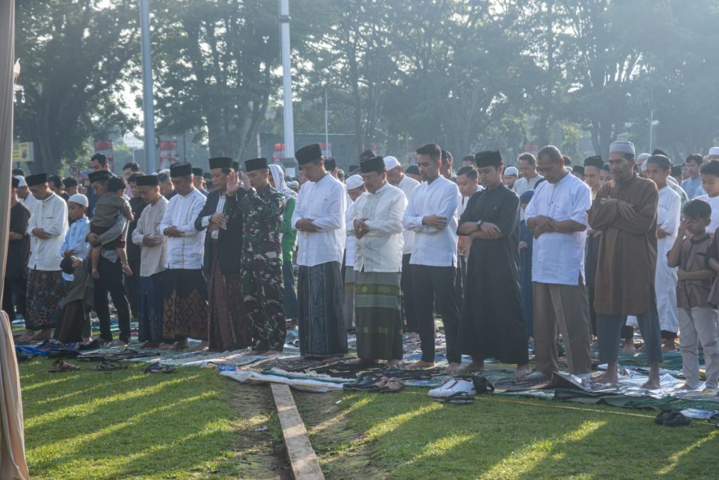 Bertindak sebagai imam adalah KH. M. Farid Abdullah, S.Pd.I., M.Hum., sementara khutbah disampaikan oleh KH. Agus A. Suaidi, Lc., M.A. Dalam khutbahnya, disampaikan pesan bertema “Takbir: Mengagungkan Allah, Bukan Mengagungkan Makhluk dengan Segala Produknya,” yang mengajak umat untuk memperkuat keimanan dan kesederhanaan dalam kehidupan.