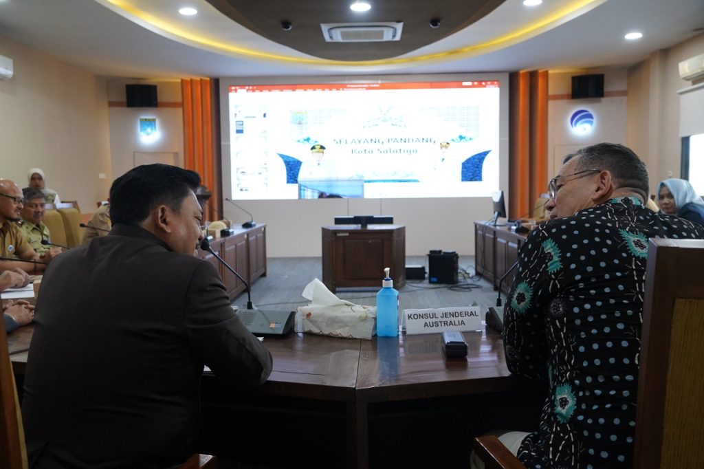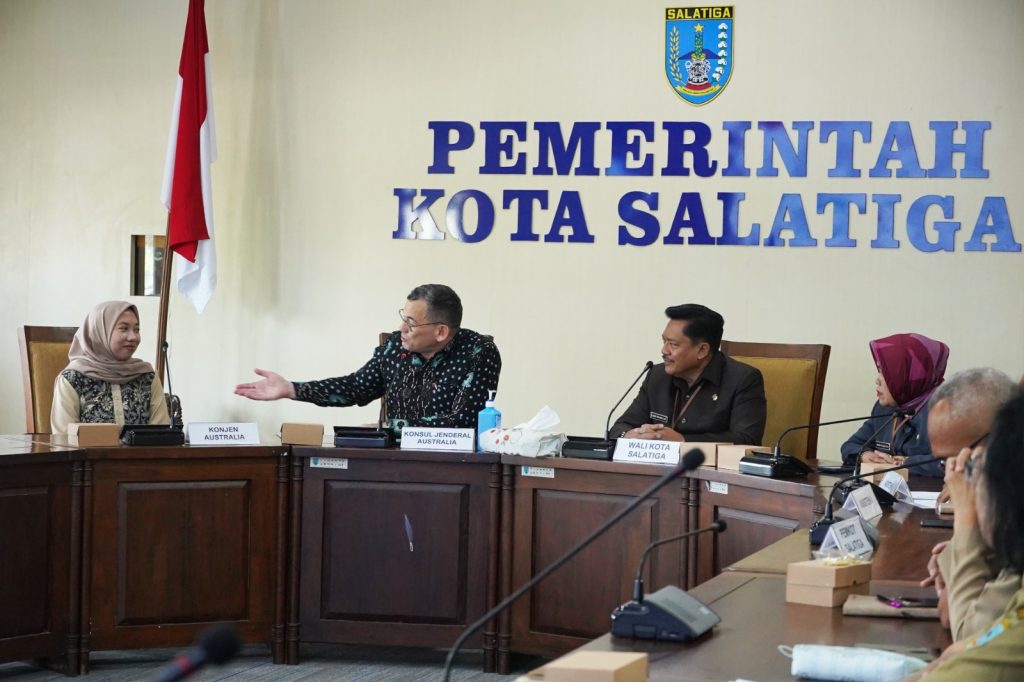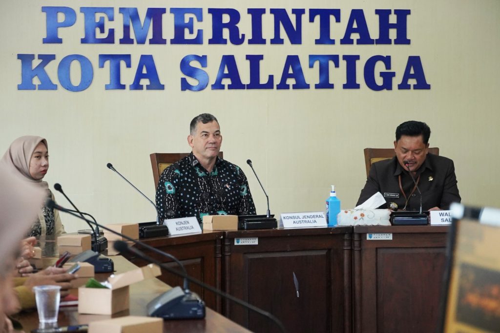 Dalam sambutannya, Wali Kota Robby Hernawan menyampaikan bahwa Salatiga selalu membuka diri untuk menjalin kerja sama dengan berbagai pihak, termasuk dengan Australia, di berbagai bidang mulai dari perdagangan, pendidikan, budaya, hingga olahraga. “Memang saat ini telah terdapat beberapa bentuk kerja sama antara Kota Salatiga dengan Australia. Sebagai contoh di bidang perdagangan, melalui ekspor produk tableware berbahan keramik dan kayu dari Naruna Ceramic, juga UMKM produk berbahan singkong Argotelo yang tahun ini melakukan ekspor perdana ke Australia,” ujar Robby.