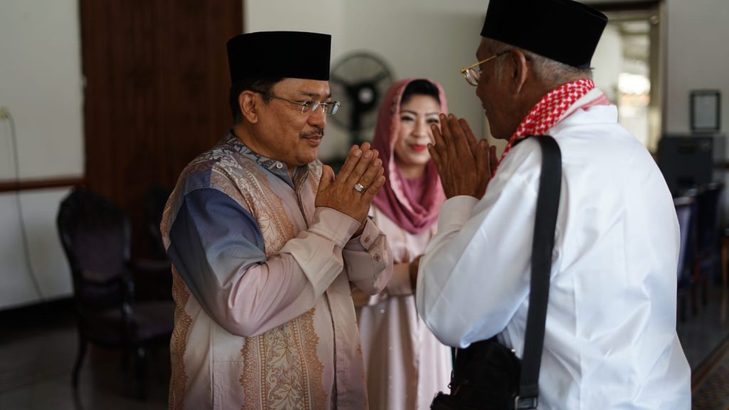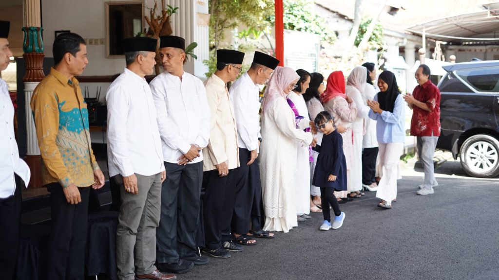 Suasana kebersamaan dan saling memaafkan di Hari Raya Idulfitri menjadi momentum untuk mempererat hubungan seluruh jajaran pemerintah Kota Salatiga. Sabtu (21/03/2026) pagi, usai melaksanakan Salat Idulfitri berjamaah, Wali Kota Salatiga, dr. Robby Hernawan, bersama istri menggelar open house di Rumah Dinas Wali Kota.
