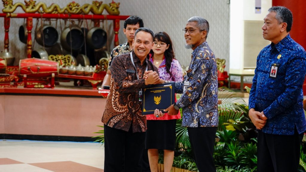 Pengetukan Palu menjadi tanda ditutupnya rangkaian pelatihan ini oleh Dr. Tri Widodo Wahyu Utomo, S.H., M.A., selaku Deputi Penyelenggaraan Pengembangan Kapasitas ASN Lembaga Administrasi Negara (LAN) Republik Indonesia, serta pemberian sertifikat oleh Sekretaris Daerah Jawa Tengah.
