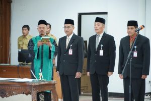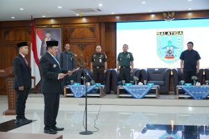 Salatiga – Pemerintah Kota Salatiga menggelar Upacara Pelantikan dan Pengambilan Sumpah/Janji Pejabat Pimpinan Tinggi Pratama di Ruang Kaloka, Gedung Setda Kota Salatiga, Selasa (8/7/2025). Pelantikan tersebut dipimpin langsung oleh Wali Kota Salatiga, Robby Hernawan, yang sekaligus mengambil sumpah/janji jabatan para pejabat yang dilantik. Turut hadir dalam acara, para Kepala Organisasi Perangkat Daerah (OPD), Staf Ahli Wali Kota, Kepala Bagian, Camat, serta Lurah se-Kota Salatiga.