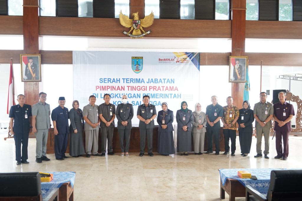 Menindaklanjuti kegiatan Pelantikan Pimpinan Tinggi Pratama pada Selasa (05/08) lalu, Pemerintah Kota menyelenggarakan Serah Terima Jabatan Pejabat Pimpinan Tinggi Pratama pada Jumat (08/08) bertempat di Pendopo Pakuwon Gedung Setda Kota Salatiga. Wali Kota, Wakil Wali Kota, Sekretaris Daerah beserta Asisten Setda, dan seluruh tamu undangan turut menyaksikan kegiatan ini dengan khidmat.