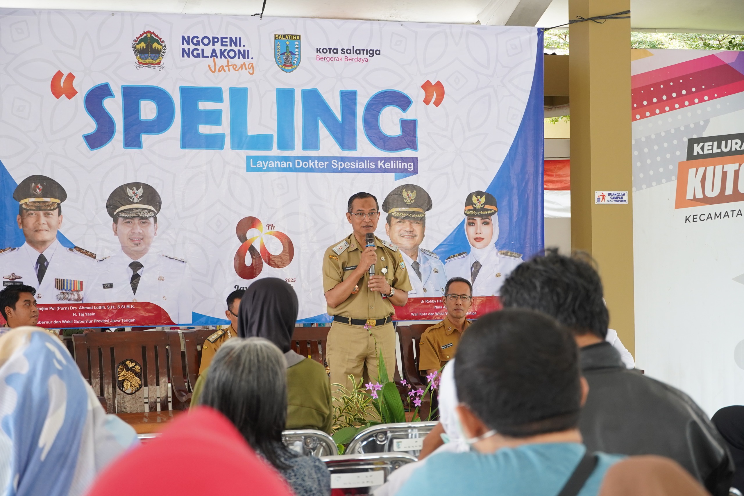 Pemerintah Kota Salatiga menyelenggarakan program Dokter Spesialis Keliling (SPELING) di Kelurahan Kutowinangun Lor, Selasa (19/08). Program ini merupakan program inovasi dari Gubernur Jawa Tengah dimana dokter spesialis dihadirkan secara langsung ditengah masyarakat untuk memberikan pemeriksaan dan pelayanan kesehatan tanpa biaya alias gratis.
