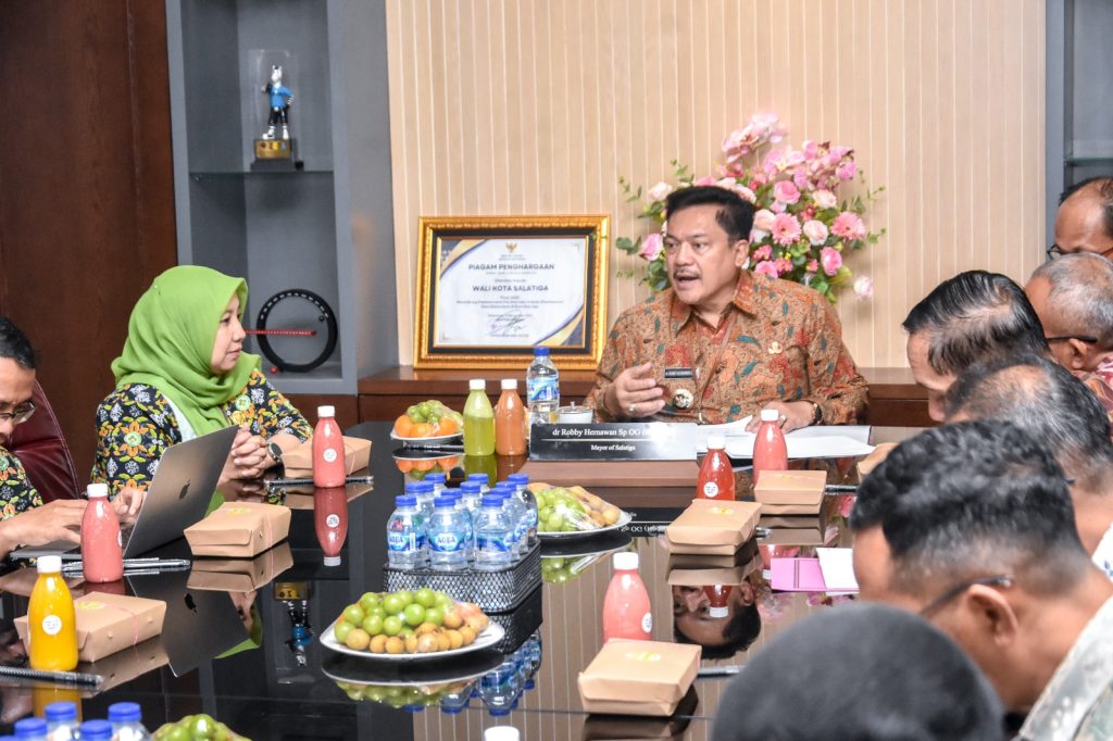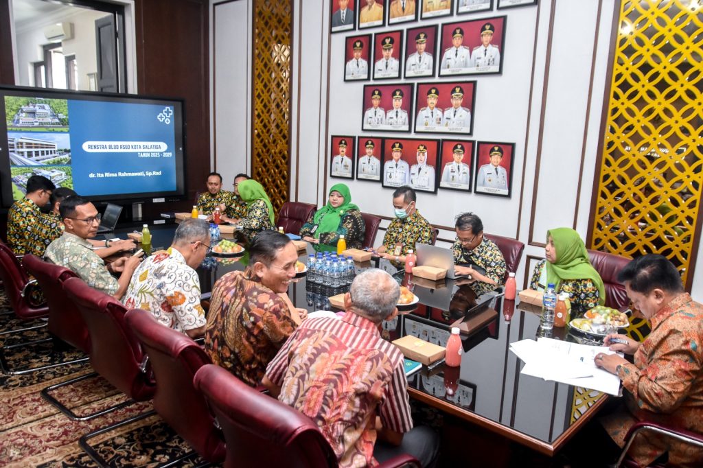Direktur Rumah Sakit Umum Daerah (RSUD) Kota Salatiga bersama jajaran melaksanakan audiensi dengan Wali Kota, Pj. Sekretaris Daerah, Asisten Sekda Bidang Perekonomian, Kepala Bagian Perekonomian Setda, serta Plt. Kepala BPKPD Kota Salatiga pada Kamis (18/12/2025) pagi. Kegiatan yang berlangsung di Ruang Wali Kota tersebut bertujuan membahas Rencana Strategis (Renstra) Badan Layanan Umum Daerah (BLUD) RSUD Kota Salatiga Tahun 2025 sebagai dasar pengelolaan, alokasi sumber daya, dan peningkatan kinerja.