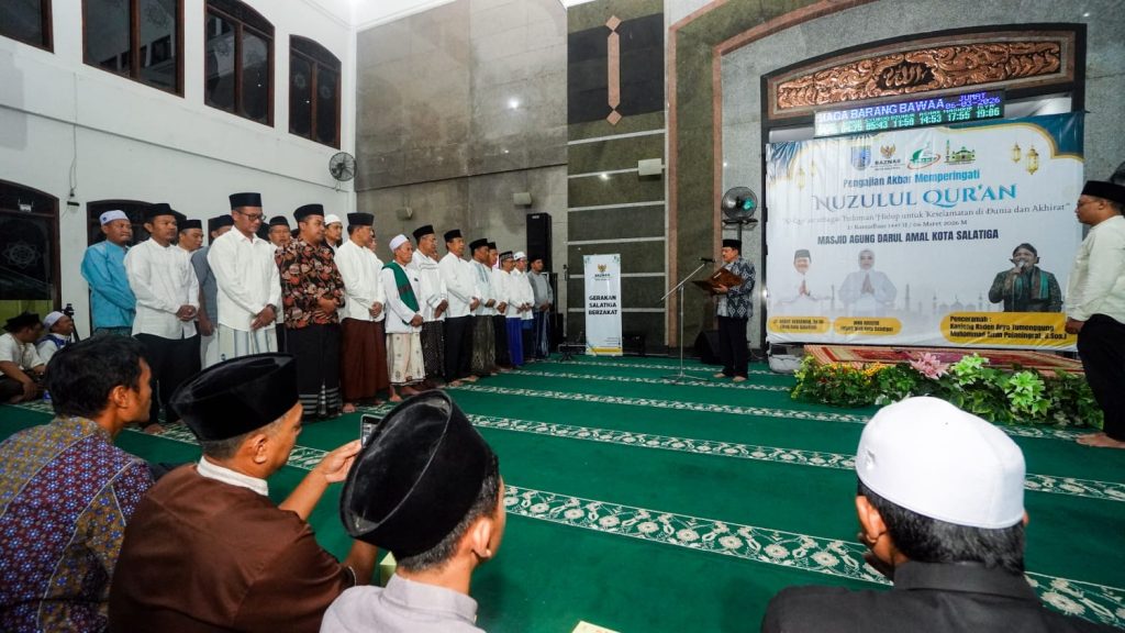 ‎Dalam kemuliaan bulan Ramadan yang penuh berkah, Wali Kota menghadiri Kegiatan Tarawih dan Silaturahim (Tarhim) pada Jumat (06/03/2026) di Masjid Agung Darul Amal Kota Salatiga. Tak hanya penuh kebersamaan dan kedamaian, kali ini Tarhim juga dilanjutkan dengan pengajian akbar dalam rangka memperingat Nuzulul Qur’an yang jatuh pada tanggal 17 Ramadan.