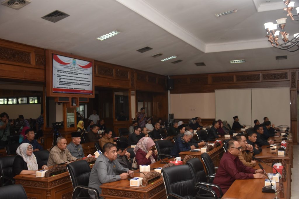 Wali Kota Salatiga, dr. Robby Hernawan, Sp.OG., menghadiri Rapat Paripurna DPRD Kota Salatiga di Ruang Bhineka, Jumat (21/11/2025). Agenda utama rapat adalah penandatanganan persetujuan bersama atas Raperda APBD Kota Salatiga Tahun Anggaran 2026, dua Raperda inisiatif Wali Kota, serta penetapan Program Pembentukan Peraturan Daerah (Propemperda) 2026.