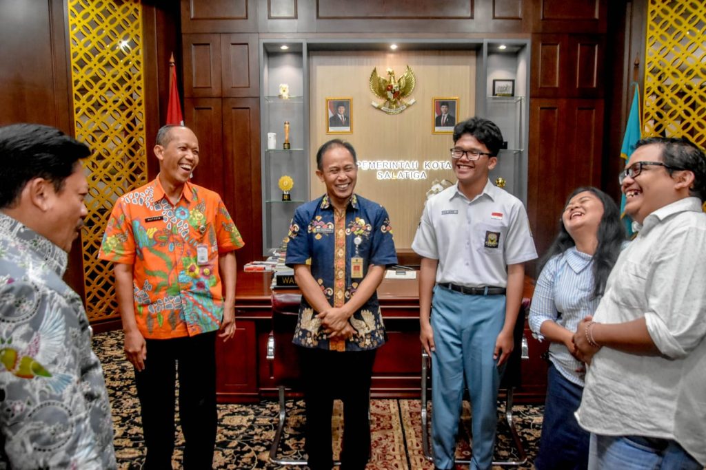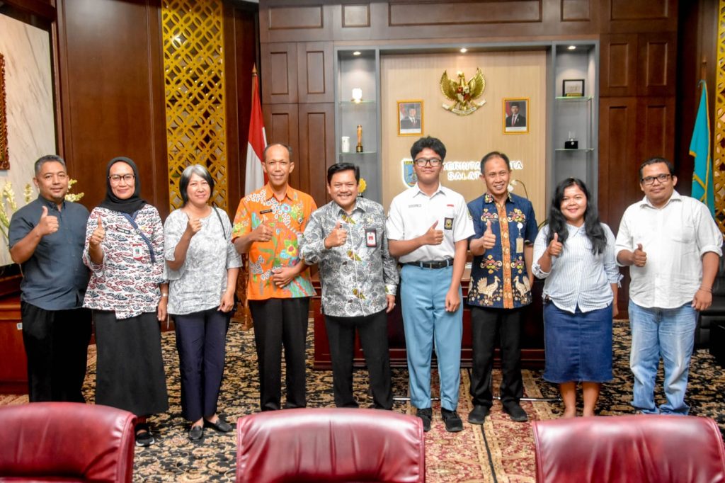 Wali Kota Salatiga, dr. Robby Hernawan, Sp.OG., menerima audiensi sekaligus melepas siswa berprestasi asal Kota Salatiga yang akan menempuh pendidikan di Korea. Pertemuan berlangsung hangat di Ruang Kerja Wali Kota, Kamis (9/4/2026).