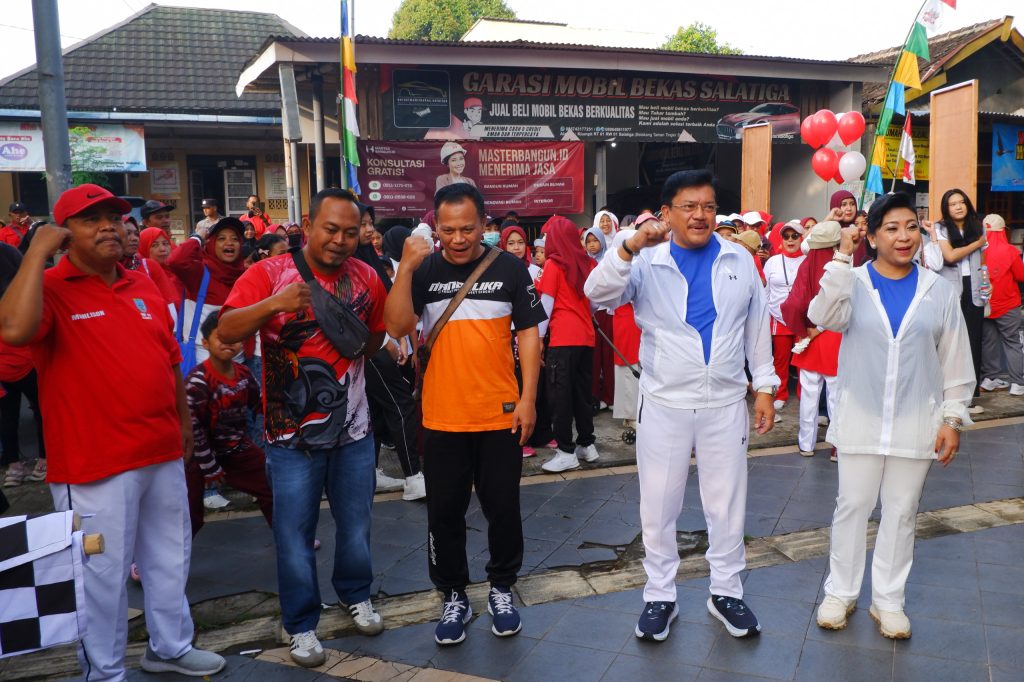 Wali Kota Salatiga, dr. Robby Hernawan, Sp.OG, bersama istri, Retno Robby Hernawan, menghadiri acara Flag off Jalan Sehat Warga Klumpit, Minggu (24/08/2025). Bertempat di Pendopo Taman Tingkir, acara ini juga dihadiri oleh Camat Tingkir dan Lurah Sidorejo Kidul, serta ratusan warga yang antusias.