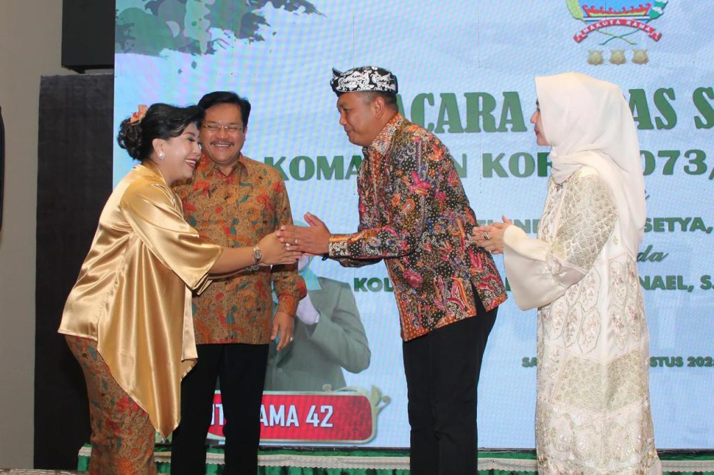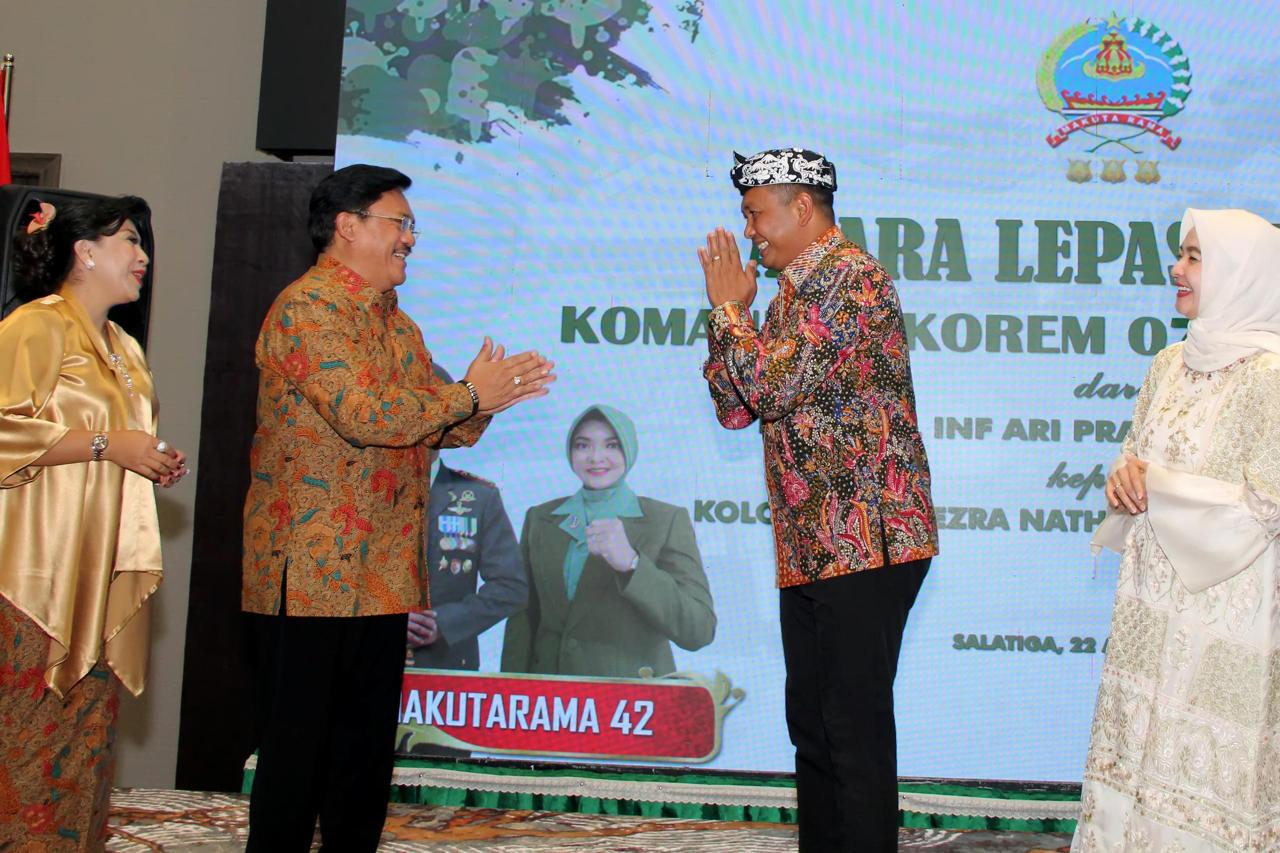 Wali Kota Salatiga, dr. Robby Hernawan, Sp. OG bersama Ketua TP PKK Kota Salatiga, Retno Robby Hernawan, menghadiri acara Lepas Sambut Komandan Korem (Danrem) 073/Makutarama di Hotel Wahid Prime pada Jumat (22/8/2025). Acara ini menandai pergantian kepemimpinan dari Kolonel Inf. Ari Prasetya, S.E., M.Han kepada Kolonel Arm Ezra Nathanael, S.Kom., M.M., M.Han.