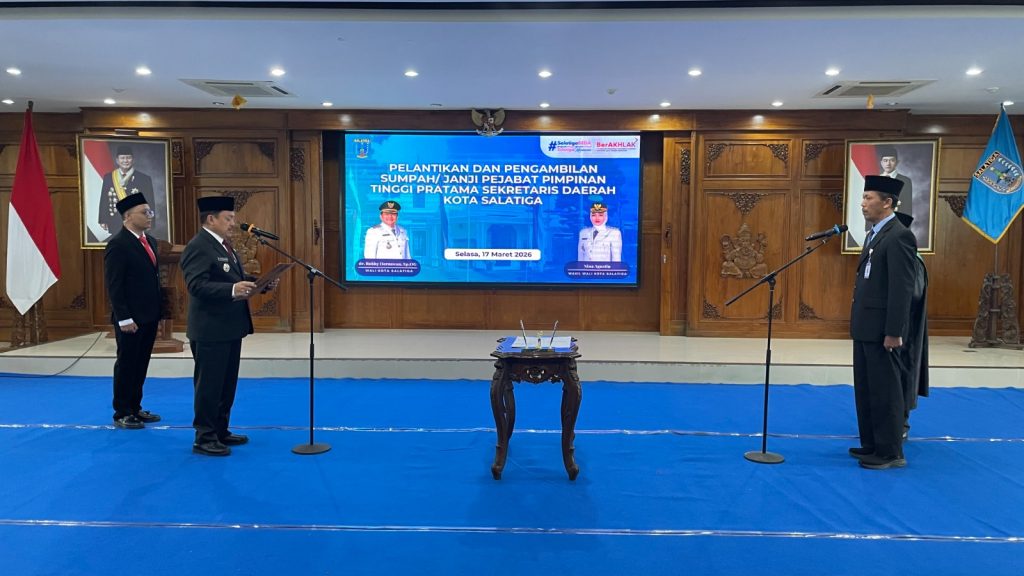 Selasa (17/03/2026), Wali Kota Salatiga secara resmi melantik Sekretaris Daerah Kota Salatiga yang baru di Ruang Kaloka lantai 4 Gedung Sekretariat Daerah Kota Salatiga. Pelantikan ini merupakan puncak dari rangkaian Seleksi Terbuka dan Kompetitif Jabatan Pimpinan Tinggi (JPT) Pratama Sekretaris Daerah Kota Salatiga yang telah dilaksanakan sejak 3 Januari 2026.