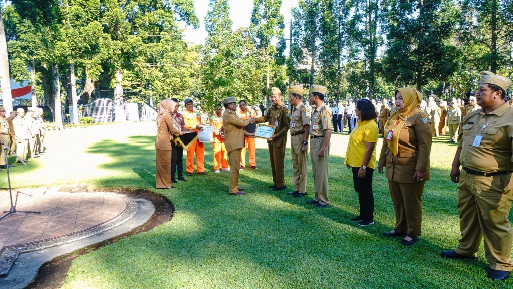 Wali Kota pimpin kegiatan apel rutin yang diikuti oleh ASN dan karyawan di Lingkungan Pemerintah Kota pada Senin (13/10/2025) bertempat di Halaman Kantor Pemkot Salatiga. Pada apel tersebut disampaikan pula beberapa prestasi yang baru saja diraih oleh Kota Salatiga