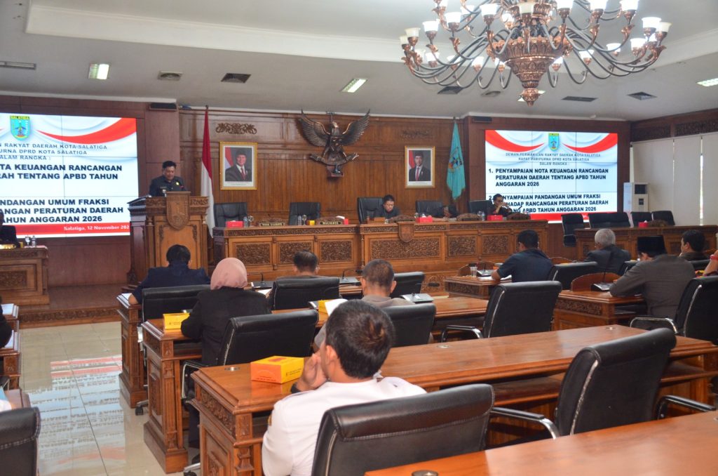 Dalam kesempatan tersebut disampaikan pula pandangan umum fraksi terhadap Rancangan Peraturan Daerah tentang APBD Tahun Anggaran 2026 oleh seluruh fraksi pada DPRD Kota Salatiga.