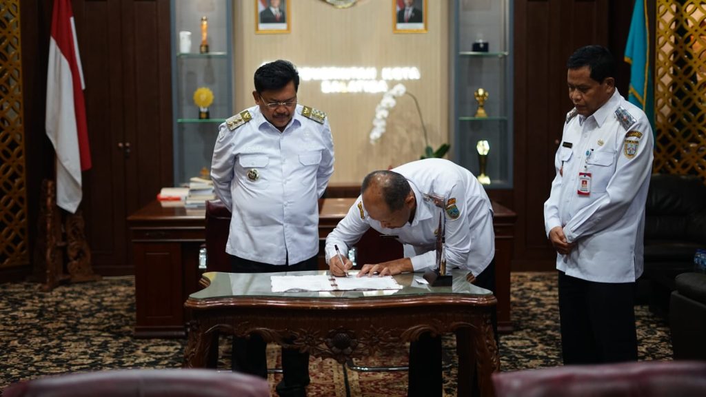 Wali Kota Salatiga, dr. Robby Hernawan, Sp.OG., secara resmi menandatangani perjanjian kinerja sekaligus memimpin penyerahan Memori Serah Terima Jabatan Sekretaris Daerah (Sekda) Kota Salatiga. Kegiatan tersebut berlangsung khidmat di Ruang Kerja Wali Kota, Rabu (1/4/2026).